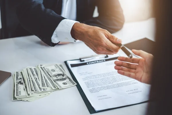 Firma del acuerdo: Una vez aprobado, el contrato de préstamo se revisa y acepta bajo términos completamente transparentes.